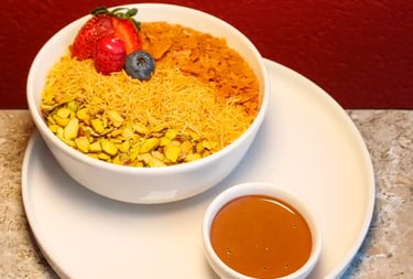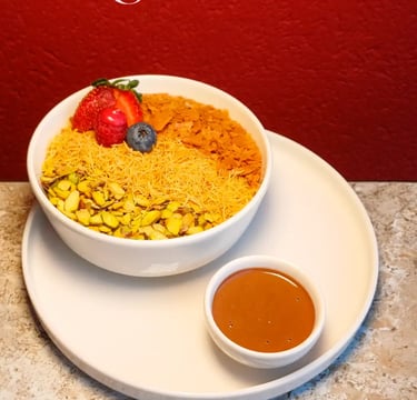 Fıstık kreması, kavrulmuş fıstık, tel kadayıf, sütlü çikolata, krep kırığı