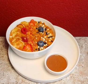 Vanilya kreması, pankek, sütlü çikolata, çilek, krep kırığı, pirinç patlağı