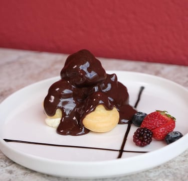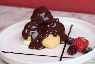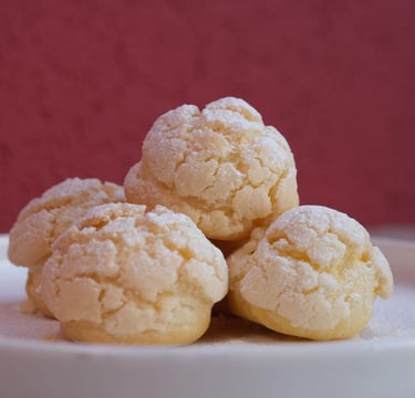 Profiterol,kremi dolgusu,tereyağı,esmer şeker,pudra şekeri