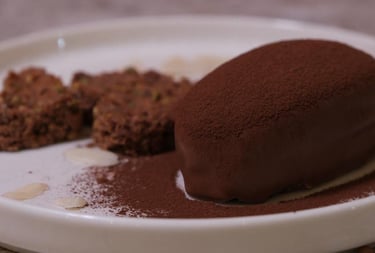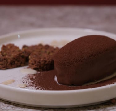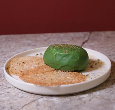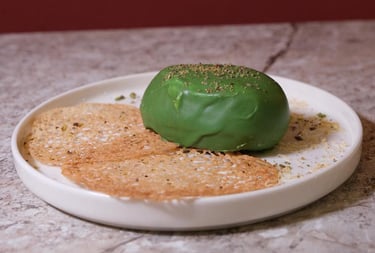 Vanilyalı mousse,antep fıstığı püresi,tel kadayıf,beyaz çikolata